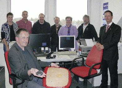 Funkstuhltechnik ist das neue "Zauberwort" beim Kommunalen Immobilien Management (KIM) der Stadt Iserlohn, wenn es darum geht, Energie und damit Kosten zu sparen. Und so funktioniert’s: Die Bürostühle der KIM-Mitarbeiter werden mit einem etwa eishockeypuckgroßen Drucksensor ausgestattet, der mit allen im jeweiligen Büro befindlichen elektronischen Geräten per Funk verbunden ist. Über die Sendeeinheit im Sitzpolster des jeweiligen Stuhles können dann Licht, Heizung, Lüftung und diverse Geräte gesteuert werden. Sobald sich ein Mitarbeiter an seinen Arbeitsplatz setzt, sendet der "intelligente Bürostuhl" die Information "besetzt" per Funk (kein Dauersender!) an die Elektronik im Raum. Deckenlicht oder Schreibtischlampe, Computerbildschirm oder Drucker, alle angeschlossenen Geräte gehen in Betrieb. Steht der Mitarbeiter wieder auf, erkennen das alle Verbrauchsgeräte und schalten sich nach fünfzehn Minuten automatisch aus. Auch die Heizung wird über die Funkstuhltechnik gesteuert. Sobald ein Fenster geöffnet wird, geht die Heizung aus. Verlässt der Mitarbeiter sein Büro bei geschlossenem Fenster, senkt sich die Temperatur automatisch um vier Grad. Zunächst sollen bis Ende April die sechzehn KIM-Büros mit der neuen Technologie aus Balve, die ohne Batterien auskommt und über Solartechnik gesteuert wird, ausgestattet werden (Investitionskosten 11.000 Euro). Deren Erfinder und Firmeninhaber Klaus Kleine gibt das mögliche Energieeinsparpotenzial mit bis zu 45 Prozent je Arbeitsplatz an. "Nach einem Jahr wollen wir schauen, wieviel wir eingespart haben", so KIM-Leiterin Claudia Zawada. Vor allem in Büros, in denen Mitarbeiter zum Beispiel wegen häufiger Außentermine nicht den ganzen Tag über an ihren Schreibtischen sitzen, bietet sich die Umrüstung an. Ziel sei es daher schon jetzt, noch weitere Bereiche der Stadtverwaltung mit der Funkstuhltechnik auszustatten, damit Energie, die nicht gebraucht wird, auch nicht unnötig verbraucht wird. |