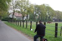 Der Radler begegnet auf der Juni-Tour saftigen Wiesen, weidenden Pferden, 100 Jahre alten Eichen und Fachwerkhäusern - hier in der Nähe von Haus Broich bei Anrath.