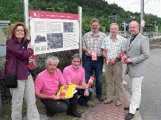 Ecopfad „Industrie- und Kulturgeschichte“ Helsa wird eröffnet Helsa. Der 18. Ecopfad im Landkreis Kassel erblickt das Licht der Welt: Am 2. Juni um 11.00 Uhr wird der Ecopfad „Industrie- und Kulturgeschichte“ Helsa am Bahnhof Helsa eröffnet. „Das Thema Industriegeschichte spielt in Helsa eine wichtige Rolle“, informiert Dr. Thilo Warneke, der für die Inhalte der Informationstafeln des Ecopfades verantwortlich zeichnet. Der Weg führe zu Standorten von alten Mühlen, zum Basalt- und Sägewerk, Kaskadengraben und zur Glashütte Lappenloch. Dr. Warneke: „Außerdem wird auch die Geschichte Helsas präsentiert“. Der neue Ecopfad hat insgesamt neun Stationen und beginnt am Bahnhof Helsa. Hier werde bereits die Bedeutung des Basaltabbaus im Stiftswald gewürdigt, so Dr. Warneke weiter. Der Weg führt dann weiter zur Firma Esterer – wo auf dem Gelände einer alten Mühle heute hochmoderne Tankfahrzeuge gebaut werden. Von dort geht es weiter über Kirche und Gemeindeschenke Helsa, zum Sägewerk und zur Obermühle. Am Helsaausblick wird über die Geschichte Helsas informiert, über die Glashütte Lappenloch führt der Weg zum Therapiezentrum und wieder zurück zum Ausgangspunkt. Dr. Warneke: „Ich bin sicher, dass der Ecopfad Helsa ein wichtiger Bestandteil der Ecopfade im Landkreis sein wird“. Für die Gestaltung und Errichtung der Informationstafeln und der Wegweiser fallen Kosten in Höhe von rund 16.900 Euro an. Auf Empfehlung des Landkreises wird die touristische Infrastrukturmaßnahme vom Land Hessen mit 10.142 Euro unterstützt. Die restlichen Kosten übernimmt die Gemeinde Helsa. Der nächste Ecopfad im Landkreis Kassel wird nach Auskunft von Kreispressesprecher Harald Kühlborn in Naumburg eingeweiht – weitere Ecopfade sind in Grebenstein-Burguffeln, Habichtswald, Helsa-St. Ottilien, Hofgeismar, Hofgeismar-Hümme, Liebenau-Lamerden, Oberweser-Gieselwerder, Schauenburg, Wahlsburg und Zierenberg-Burghasungen geplant. „Die bisherigen Ecopfade werden gut angenommen und das große Interesse an weiteren Lehrpfaden zeigt, dass diese Initiative ein Erfolgsmodell ist“, so Kühlborn weiter. Aktuelle Informationen über die Ecopfade im Landkreis Kassel gibt es auch im Internet. Unter www.eco-pfade.de sind sämtliche Faltblätter der Ecopfade im Kreis Kassel und die neuesten Entwicklungen zum Thema kulturgeschichtliche und archäologische Wanderstrecken zu finden. Außerdem liegen mittlerweile auch für drei Ecopfade Hörführungen vor – weitere Hörführungen sind in Planung. Das Erstellen der Hörführungen, die entweder als MP3-Datei von der Internetseite herunter ladbar sind oder im Infozentrum des Naturparks Habichtswald auf dem Dörnberg und im Infozentrum Reinhardswald im Tierpark als CD zu erwerben sind, wird vom Land Hessen und der Sparkassenstiftung Kultur der Kasseler Sparkasse finanziell unterstützt. Pressekontakt: Pressestelle LANDKREIS KASSEL, Harald Kühlborn Zu dieser Meldung können wir Ihnen folgendes Medium anbieten: Eco Pfad Helsa 004 Auf dem Foto sieht man von links nach rechts Grafikerin Birgit Mietzner, Winfried Rode und Jürgen Scholz von der Dorfgemeinschaft Helsa, Bürgermeister Thilo Küthe, Gerd Vogelsang vom Geschichtsverein Helsa und Dr. Thilo Warneke.