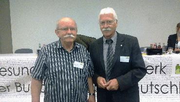 Bildzeile: Burkhard Elsner, Selbsthilfesprecher im Kreis Unna aus Lünen, und Kreisgesundheitsdezernent Norbert Hahn wurde für weitere drei Jahre in den Sprecherrat des Gesunde Städte-Netzwerkes der Bundesrepublik Deutschland gewählt. (v.l.). Foto: Kreis Unna