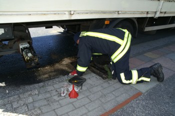 Am Freitagmittag wurde die Ölschadengruppe zu einem Einsatz in die Norddeicher Straße gerufen. Dort war an einem LKW eine Hydraulikölleitung geplatzt und einige Liter Öl ergossen sich über die Fahrbahn und in einen Regenwasserablauf. Die Einsatzkräfte sicherten zunächst die Einsatzstelle ab und unterstützten dann eine Spezialfirma für Ölschadenbeseitigungen bei der Reinigung der Fläche. Nach ca. eineinhalb Stunden war der Einsatz beendet. Vor Ort waren neben Feuerwehr mit zehn Einsatzkräften und der Spezialfirma auch eine Streifenwagenbesatzung der Polizei Norden und ein Mitarbeiter der unteren Wasserbehörde des Landkreises Aurich.