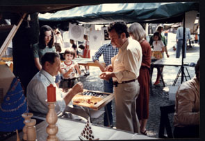 Der Kunstmarkt natürlich! In den 80er Jahren zeichnete dieser sich schnell als überregionaler Publikumsmagnet ab. 1977 bauten die Künstler ihre Stände noch in der Innenstadt auf. Hier fand der Kunstmarkt am Antoniusplatz statt. Aus Platzgründen zog man Mitte der 80er Jahre in den Schlosspark um. Natürlich duften auf den Märkten in den 80er Jahren weder Batikkleidung noch „Käthe-Kruse-Puppen“ fehlen. Besonders beliebt waren schon damals die Stände, an denen das Publikum den Künstler über die Schulter schauen konnte. 1982 ermöglichte eine Versteigerung von gestifteten Kunstgegenständen Kindern mit Behinderungen eine Freizeit. Aber absolutes Highlight 1982 - so berichtet die Hertener Allgemeine - war die Kunstaktion des Gymnasiums: Die „Pennäler“ begeisterten mit „Kunst zum Mitmachen“ und fertigten Gipsabdrücke von Händen, Gesichtern und Oberkörpern.