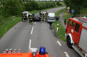 In einer langgezogenen Kurve des Langen Weg, dort kreuzt der Altendeichsweg die L27, waren gegen 16.45 Uhr drei Fahrzeuge zusammengeprallt. Drei Insassen erlitten bei dem Unfall leichte Verletzungen und mussten vom Rettungsdienst ins Krankenhaus gebracht werden. Die zwölf Einsatzkräfte der Feuerwehr stellten den Brandschutz an der Unfallstelle sicher und klemmten die Batterien der Fahrzeuge ab.