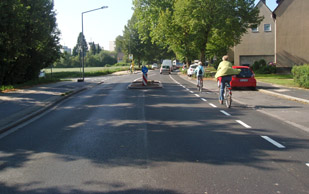 Damit wurde eine Lücke im Radwegenetz geschlossen. Denn auf diesem Streckenabschnitt war bisher bergaufwärts kein Angebot für Radfahrer vorhanden, bergabwärts existierte in diesem Bereich ein gemeinsamer Geh- und Radweg. Nun wurde auf beiden Seiten ein Schutzstreifen markiert. Radfahrer müssen sich in diesem Abschnitt nun nicht mehr ihren Weg auf die Fahrbahn suchen, sondern werden kurz vor der Beethovenstraße auf die Fahrbahn geführt. Dort fahren sie am rechten Fahrbahnrand auf dem Schutzstreifen, bis sie an der Schulstraße wieder auf den getrennten Geh- und Radweg geleitet werden.