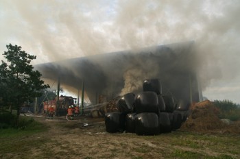 Am Donnerstagmorgen wurde ein Großbrand in der Ortschaft Uttum in der Gemeinde Krummhörn gemeldet. Auf einem landwirtschaftlichen Anwesen war es gegen 7.15 Uhr in einer offenen Lagerhalle zu einem Großbrand gekommen. Die Flammen griffen schnell um sich, so dass innerhalb kürzester Zeit zahlreiche Strohballen sowie mehrere Landmaschinen dem Feuer zum Opfer fielen.