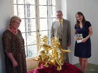 Die Museumslandschaft Hessen Kassel (MHK) und Helmut Wenzel, Inhaber des Waldhotels Schäferberg in Espenau, riefen im März dieses Jahres die Aktion „Retten Sie die Putten von Wilhelmsthal!“ ins Leben. Seitdem hat sich Einiges getan. Die MHK freut sich über den Eingang von Spenden zur Restaurierung der Wilhelmsthaler Putten. „Besonders schön war die Zusage des Landkreises Kassel, für die Restaurierung einer kompletten Puttengruppe zu spenden“, so Dr. Gisela Bungarten, stellvertretende Direktorin der MHK. Dabei habe der Landkreis eine Mindestspende von 15.000 Euro zugesagt. Der Denkmalbeirat des Landkreises Kassel hat sich mehrfach für den Erhalt der Putten ausgesprochen. Landrat Uwe Schmidt begründet die Unterstützung: „Wir wollen mit unserer Spende - trotz der schwierigen Haushaltslage des Landkreises - ein Beispiel für andere Spender geben. Schloss Wilhelmsthal und der Park sind ein Juwel und ein wichtiger Baustein für den Tourismus im Landkreis“. Deshalb seien Investitionen an dieser Stelle auch immer Investitionen in die zukünftige wirtschaftliche Entwicklung in der Region. Ähnlich sieht es auch der seit November 2008 eingetragene „Verein der Gäste- und Museumsführer in Kassel und Region e.V.“. Ziel des Vereins ist die Vernetzung von Gäste- und Museumsführern, die letztlich der Stärkung des Tourismus in Kassel und der Region dient. Beim diesjährigen 4. Kasseler Gäste- und Museumsführertag sammelte der Verein insgesamt knapp 200 Euro Spenden für die Putten. Einzelne Vereinsmitglieder stockten diesen Betrag auf insgesamt 350 Euro auf. „Es ist uns ein großes Anliegen, unseren Anteil an der Realisierung touristischer und kultureller Projekte zu leisten“, erklärt Gäste- und Museumsführerin Margret Baller in Vertretung für die kurzfristig verhinderte Vorsitzende des Vereins, Claudia Panetta-Möller. Eine gute Zusammenarbeit mit den verschiedenen Kultureinrichtungen liege dem Verein daher sehr am Herzen. Aus diesem Grund sei es den Gästeführern ein großes Bedürfnis, die Museumslandschaft Hessen Kassel bei der Restaurierung der Putten in Wilhelmsthal zu unterstützen, so Baller weiter. Zusätzlich zu den Spenden des Landkreises Kassel und des Vereins der Gäste- und Museumsführer sind 23.460 Euro Spenden bei der MHK eingegangen. Der Erhalt und die Pflege der eindrucksvollen Anlage von Park und Schloss Wilhelmsthal bedürfen intensiver Aufwendungen in personeller und finanzieller Hinsicht. Die MHK hofft auf weitere hilfreiche Unterstützung in ihren Bemühungen, die vergoldeten Putten wieder vollständig restaurieren zu können. Die Putten sind wichtige Elemente dieses weit über die Region hinaus einmaligen historischen Gartendenkmals, das es zu schützen und für die Nachwelt zu erhalten gilt. Mehr Informationen zum Restaurierungsprojekt finden Sie unter: www.museum-kassel.de. Pressekontakt: Judith Reitter, fon: (0 561) 3 16 80 115, email: j.reitter@museum-kassel.de, www.museumkassel.de Pressekontakt: Pressestelle LANDKREIS KASSEL, Harald Kühlborn Zu dieser Meldung können wir Ihnen folgendes Medium anbieten: Paten fuer Putten 001 Auf dem Foto sieht man von links nach rechts Claudia Panetta-Möller, Landrat Uwe Schmidt und Dr. Gisela Bungarten sowie eine bereits restaurierte Puttengruppe.