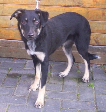 Gardiola ist eine junge Hündin mit einem kurzen schwarzen Fell und hellbraunen Pfoten. Im Tierheim Hage lebt sie mit sieben anderen Junghunden im Rudel. Wir suchen für diese Hündin - und auch für die anderen Junghunde - ein Zuhause.