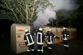 Ein Altkleidercontainer auf dem Parkplatz eines Verbrauchermarktes im Glückauf brannte in der Nacht zu Freitag.