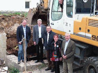 Am Beginn steht ein Abriss - Start der Dorferneuerung in Naumburg Naumburg. „Um Neues schaffen zu können, muss manchmal Altes weichen“. Mit diesen schon leicht ins philosophische spielenden Worten informiert Peter Nissen, Leiter der Abteilung Dorferneuerung und Regionalentwicklung im Amt für den ländlichen Raum des Landkreises Kassel in Hofgeismar das erste sichtbare Projekt der Dorferneuerung in Naumburg. Am Anfang des bis 2018 laufenden Dorferneuerungszeitraums steht der Abriss der Ruine eines im Januar 2009 durch einen Brand zerstörten Wohngebäudes in der Graf-Widukind-Straße 1 in der Naumburger Altstadt. Von dem einstigen Fachwerkhaus standen seit dem Brand nur noch die Grundmauern. „Wir haben das Grundstück inklusive Ruine erworben und sind jetzt in der Lage, im Rahmen der Dorferneuerung in der eng bebauten Altstadt einen Platz zu schaffen, der von den Anliegern und der Öffentlichkeit genutzt werden kann“, berichtet der Naumburger Bürgermeister Stefan Hable. Damit diese Freifläche entstehen kann, muss die Brandruine abgerissen werden. Nissen: „Normalerweise stehen Abrissvorhaben nicht im Fokus der Förderung durch die Dorferneuerung – wir stellen aber verstärkt fest, dass für die Erhaltung und Wiederbelebung historischer Ortskerne Plätze und Freiflächen notwendig sind“. Außerdem lasse sich nicht jedes Haus erhalten oder wieder aufbauen. Für die Dorferneuerung sei entscheidend, dass eine nachhaltige Nutzung mit der jeweiligen Maßnahme verbunden ist. „Wir wollen damit die Zukunftsfähigkeit des ländlichen Raums fördern und da gibt es viele Wege, die zum Ziel führen“, so Nissen weiter. Gänzlich verschwinden wird das abgebrannte Fachwerkhaus jedoch nicht. Die mit dem Arbeitskreis Dorferneuerung abgestimmte Planung des Kasseler Büros akp sieht vor, dass der ehemalige Grundriss entlang der Graf-Widukind-Straße mit einer Steinreihe markiert wird – außerdem soll eine Begrenzungsmauer erhalten werden. Auf den neuen Platz soll es einen Baum mit Sitzgelegenheiten geben. In Richtung Straße entsteht ein Spiel- und Aufenthaltsbereich. Hable: „Hier soll so wenig wie möglich befestigt werden – uns schwebt eine grüne Oase mit Apfelbaum und blühenden Pflanzen vor“. Die Kosten für Abriss und Neugestaltung belaufen sich auf rund 57.000 Euro. Die Stadt erhält einen Zuschuss aus dem Kommunalen Finanzausgleich in Höhe von 34.357 Euro. Die Restsumme übernimmt die Stadt Naumburg. Bürgermeister Hable und Abteilungsleiter Nissen sind sich einig, dass die bisherigen vorbereitenden Arbeiten des Arbeitskreises Dorferneuerung und die daraus entstandenen Maßnahmen sich sehr positiv auf die Entwicklung der Kernstadt Naumburg und des Stadtteils Altendorf auswirken werden. Naumburg und Altendorf sind seit 2010 im Dorferneuerungsprogramm des Landes Hessen. Pressekontakt: Pressestelle LANDKREIS KASSEL, Harald Kühlborn Zu dieser Meldung können wir Ihnen folgendes Medium anbieten: Brandhaus Naumburg 002 Auf dem Foto sieht man von links nach rechts Jürgen Günst (Vorsitzender AK Dorferneuerung), Peter Nissen (Amt für den ländlichen Raum), Stefan Hable (Bürgermeister), Carola Witte (Planerin) und Christian Primus (Amt für den ländlichen Raum) - aus dem Baggerfenster grüßt Dirk Becker (Abbruchunternehmen).