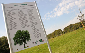 Baumpflanzaktion: Patentafel an der Obstwiese aufgestellt