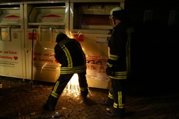 Zum wiederholten Male brannte ein Altkleidercontainer auf einem Parkplatz im Glückauf. Diesmal brannte ein Sammelbehälter in der Nacht zu Freitag gegen 23.30 Uhr. Auch diesmal rückte die Freiwillige Feuerwehr Norden mit einem Löschfahrzeug an und löschte die Kleidungsstücke ab. Genau zwei Wochen zuvor hatte es bereits an der selben Stelle gebrannt. Die Polizei hat die Ermittlungen aufgenommen.