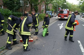 Heute Vormittag musste die Ölschadengruppe der Freiwilligen Feuerwehr Norden zu einer Ölbeseitigung in die Uffenstraße ausrücken. In Höhe der Polizeidienststelle hatte eine Taxe gegen 9.15 Uhr einen Motorplatzer erlitten. Hierdurch hatte sich das gesamte Motorenöl auf die Fahrbahn sowie den Rinnstein ergossen. Die Mitglieder der Feuerwehr banden das Öl mit Bindemittel ab. Da die Rutschfestigkeit der Fahrbahn hierdurch nicht ordnungsgemäß wieder hergestellt werden konnte, wurde eine Spezialfirma mit der Reinigung beauftragt.