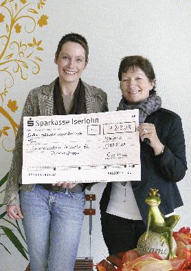 Am 25. April verstarb die frühere Mitarbeiterin des ehrenamtlichen Dienstes der Stadt Iserlohn "Continue" Karin Metkemeier im Alter von nur 47 Jahren. Die Familie der Verstorbenen hatte angegeben, dass anstelle von Blumen und Kränzen eingehende Kondolenzspenden für "Continue" bestimmt sein sollten. Neben ihrem ehrenamtlichen Einsatz bei "Continue" hatte sich Karin Metkemeier auch beim Seniorenzentrum Letmathe im Umgang mit demenzkranken Menschen engagiert. Um das Engagement der Verstorbenen zu würdigen und die Arbeit in diesem Bereich zu unterstützen, hat "Continue" beschlossen, dass die Spende dem Seniorenzentrum zugutekommen soll. Die hauptamtliche "Continue"-Mitarbeiterin Brigitte Manthey-Radzuweit von der Abteilung für Senioren und Menschen mit Behinderung der Stadt Iserlohn übergab einen Scheck über die gespendete Summe von 1.213,08 Euro an die Leiterin des Seniorenzentrums Letmathe Miriam Manns. |