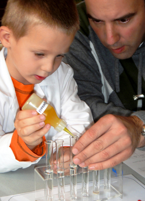 Zu diesem Workshop sind wissbegierige Kinder eingeladen, die gerne ausprobieren und ergründen wollen, aber noch nicht lesen und schreiben können. Gemeinsam mit einem Eltern- oder Großelternteil gehen sie den Ursachen verschiedener Phänomene auf den Grund und gewinnen spielerische Einblicke in die Welt der Physik und Chemie. Später haben die Nachwuchsforscherinnen und -forscher die Möglichkeit an weiteren Workshops der Reihe „Was passiert, wenn …?“ teilzunehmen. Auf diese Weise kann bereits im Kindergartenalter das naturwissenschaftliche Interesse mit einfachen Experimenten aufgegriffen und gefördert werden.