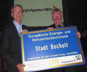 Beim "European Energy Award" handelt es sich um ein europaweites Bewertungsverfahren, das kommunale Konzepte im Bereich Energiegewinnung und Energieverbrauch untersucht. Zahlreiche Kriterien fließen in die Gesamtwertung ein, so der Energieverbrauch in städtischen Gebäuden, die Kohlendioxid-Bilanz oder die Nutzung regenerativer Energiequellen. Im Jahr 2005 erreichte Bocholt eine Bewertungsquote von 67 Prozent, vor zwei Jahren erreichte man 74 Prozent. Nunmehr konnte die (Gold-)Marke von 75 Prozent überschritten werden.