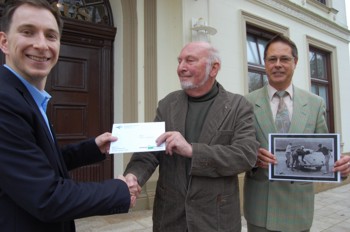 von links: Hanno Wiesmann (Stadt Norden), Ernst Köppen (Gewinner des Fotowettbewerbes), Raimond Groeneweg (Stadt Norden)