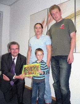 Lucas Ballon flog am weitesten – Auch 2012 wieder Familientag der Kreisverwaltung Wolfhagen/Kreis Kassel. Im Rahmen des Aktionstages „Zeit für Familie“ im Mai 2011 auf dem Gelände der Wilhelm-Filchner-Schule in Wolfhagen hatte der Landkreis Kassel einen Luftballon-Wettbewerb veranstaltet. Jetzt steht der Gewinnerballon fest: Der vom vierjährigen Luca Müller aus Wolfhagen auf die Reise geschickte Luftballon landete nach rund 340 Kilometern in der Nähe von Kriebstein in Sachsen. Dort wurde er gefunden und die am Ballon befestigte Karte an den Landkreis Kassel zurückgeschickt. Luca wird auch zukünftig als Botschafter des Landkreises Kassel aktiv sein – dabei hilft sicherlich der erste Preis des Luftballonwettbewerbs: eine Familienjahreskarte für den Tierpark Sababurg“, freut sich Landrat Uwe Schmidt beim Besuch des Gewinners und seiner Familie im Kreishaus. Auch im nächsten Jahr werde der Landkreis wieder einen Familientag organisieren. Schmidt: „Der Familientag 2012 wird am 1. Juni mit dem Schwerpunkt Aus- und Weiterbildung im neuen Hessencampus in Hofgeismar stattfinden“. Pressekontakt: Pressestelle LANDKREIS KASSEL, Harald Kühlborn Zu dieser Meldung können wir Ihnen folgendes Medium anbieten: Luftballonaktion 004 Auf dem Foto sieht man Landrat Uwe Schmidt, Luca und seine Eltern Josefine und Thomas.