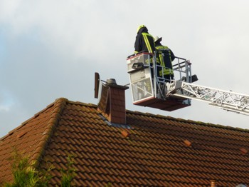 Schornsteinabdeckung löste sich, Türöffnung, Feuerwehr öffnet Pforte