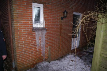 Aufmerksamen Nachbarn waren am späten Sonntagnachmittag über einen Meter lange Eiszapfen an den Außenmauern des Hauses aufgefallen und sie hörten beim Nachsehen lautes Plätschern.