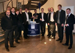 Erfolgreiche Partnerschaft: Die Kölner Haie mit Trainer Uwe Krupp (2. von rechts) sowie Volker Windhöfel (rechts), Hoteldirektor des Dorint Hotel am Heumarkt.