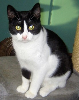 Der schwarz-weiß getigerte Kater ist in jeglicher Hinsicht ein liebes Tier. Er ist verspielt, neugierig und aktiv, ist sehr kinderlieb und versteht sich auch gut mit anderen Katzen.
