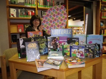 Auszubildende Sabine Nolte mit einigen besonders beliebten Medien