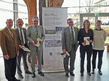 „Kupferbeil und Bärenkralle“ – eine kleine Vor- und Frühgeschichte des Landkreises Kassel Region Kassel. „Kupferbeil und Bärenkralle“ ist der Titel eines neuen Buches zur Vor- und Frühgeschichte des Landkreises Kassel, das Landrat Uwe Schmidt zusammen mit der Autorin Dr. Almut Bick im Kasseler Kreishaus vorstellt. „Damit diese wie ich finde sehr gelungene Publikation das Licht der Welt erblicken konnte, bedurfte es einer Vielzahl von Müttern und Vätern – da wundert es nicht, dass auch die sonst üblichen neun Monate von der Idee bis zur Geburt leicht überschritten wurden“, berichtet Schmidt. Nachdem im Zuge einer Ausstellung des Hessischen Landesmuseums 2007 der Band „Fundort Kassel“ erschienen war, reifte auch beim Landkreis Kassel die Überzeugung, dass eine ähnliche Veröffentlichung für das Kreisgebiet notwendig ist. Schmidt: „Wir haben Frau Dr. Bick kontaktiert, die auch die Autorin von Fundort Kassel ist und sind uns schnell und unbürokratisch einig geworden“. Unbürokratisch war im folgenden auch die Zusammenarbeit mit dem Landesamt für Denkmalpflege und der Museumslandschaft Hessen Kassel und dem Team der vor- und frühgeschichtlichen Sammlung unter der Leitung von Dr. Irina Görner, lobt der Landrat. „Das Lob können wir nur zurückgeben, da es nicht selbstverständlich ist, dass sich ein Landkreis mit solchem Engagement für sein historisches Erbe einsetzt“, zeigt sich auch der Direkter der Museumslandschaft Hessen Kassel Prof. Dr. Bernd Küster mit der Kooperation zufrieden. „Wir unterstützen die Arbeit der Sammlungen der Museumslandschaft Hessen Kassel sehr gern und daher waren wir auch hier gern mit im Boot“, berichtet Dr. Joachim Schröder, Vorsitzender des Museumsvereins Kassel e.V., ein weiterer Kooperationspartner des Buchprojektes. Mit Blick auf die Überschrift eines Buchkapitels „Der Landkreis Kassel: Ideal für Jäger, Bauern und Händler“ sieht der Vorstandsvorsitzende der Kasseler Sparkasse Ingo Buchholz die finanzielle Unterstützung des Buchprojekts „als Fortschreibung einer Erfolgsgeschichte unserer Region“. Auch heute seien Stadt und Landkreis Kassel wie in der Altsteinzeit ideal für Handel und Logistik: „Hier kreuzten sich schon immer wichtige Verbindungswege und so kann man mit Fug und Recht sagen, dass unsere Region für wirtschaftliche Betätigung genau richtig liegt“, so Buchholz weiter. Neben der Kasseler Sparkasse beteiligte sich auch die Kulturstiftung des Landkreises Kassel an der Finanzierung des Buches und der begleitenden Ausstellung. „Was mir besonders gefällt ist, dass das Buch verständlich für Laien und interessant für Archäologieexperten geschrieben ist“, betont Landrat Schmidt, der auch die gelungene Optik lobt, für die die Kasseler Grafikerin Josephine Schmücker verantwortlich zeichnet. „Genau das wollte ich auch erreichen, denn ohne die zeitgemäße Vermittlung des Wissens über die Vor- und Frühgeschichte wird es nicht gelingen, das Bewusstsein dafür zu schaffen archäologische Fundstätten zu bewahren und nachhaltig zu sichern“, stimmt die Marburger Wissenschaftsjournalistin Dr. Almut Bick zu. Das Interesse an der Vor- und Frühgeschichte sei groß – allerdings fehle es häufig an wissenschaftlich abgesicherten Erkenntnissen in einer auch für Laien verständlichen Form. Auf 170 Seiten führt „Kupferbeil und Bärenkralle“ von den ersten menschlichen Spuren der Altsteinzeit bis zur Eisenzeit und berücksichtigt dabei auch die vorhandenen Eco-Pfade Archäologie im Landkreis Kassel. Dr. Bick: „Das Buch soll auch auf Exkursionen mitgenommen werden – deshalb haben wir uns entschieden, die Auswahl der Fundorte auf die eigentliche Vorgeschichte zu begrenzen und zeitlich in den Jahrhunderten nach Christi Geburt enden zu lassen“. Seit der Veröffentlichung des heute vergriffenen Führers zu vor- und frühgeschichtlichen Denkmälern für die Region zwischen Bad Karlshafen und Ziegenhain aus dem Jahr 1982 habe sich in der archäologischen Forschung so viel getan, dass eine Gesamtübersicht bis zum frühen Mittelalter „den Rahmen völlig gesprengt hätte“, so Dr. Bick. Die vor- und frühgeschichtliche Sammlung des Hessischen Landesmuseums, die zurzeit wegen des Umbaus des Museums keine Ausstellungsflächen zur Verfügung hat, nutzt die Buchpräsentation für eine kleine Ausstellung im Kreishaus zur Archäologie im Landkreis Kassel. „Wir hatten das Glück, das eine wissenschaftliche Volontärin, Frau Melanie Zindler, zur Verfügung stand, die das Material für die vier Ausstellungstafeln und drei Vitrinen erarbeitet und zusammengestellt hat“, berichtet die Leiterin der vor- und frühgeschichtlichen Sammlung Dr. Irina Görner. Das Buch „Kupferbeil und Bärenkralle – Archäologie im Landkreis Kassel“ wird ab dem 23. April 2012 im Kreishaus Kassel (Tel.: 0561/1003-1329), im Besucherzentrum Herkules und im Museumsshop Schloss Wilhelmshöhe sowie im Infozentrum Naturpark Habichtswald auf dem Hohen Dörnberg und dem Infozentrum im Tierpark Sababurg für 12,80 Euro erhältlich sein. Die begleitende Ausstellung ist vom 16. April bis zum 30. April zu den Öffnungszeiten des Kreishauses zu sehen. Pressekontakt: Pressestelle LANDKREIS KASSEL, Harald Kühlborn Zu dieser Meldung können wir Ihnen folgendes Medium anbieten: Kupferbeil 001 Auf dem Foto freuen sich von links nach rechts Dr. Joachim Schröder, Prof. Dr. Bernd Küster, Ingo Buchholz, Landrat Uwe Schmidt, Dr. Almut Bick und Dr. Irina Görner über die gelungene Publikation.