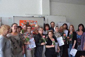 Zertifikatsvergabe mit Gütesiegel für "Qualifizierung in der Kindertagespflege" Zehn neue Tagesmütter und ein neuer Tagesvater konnten am 22. Juni stolz ihre Zertifikate über die Qualifizierung in der Kindertagespflege in der Volkshochschule Iserlohn entgegennehmen. In Kooperation mit dem Bereich Jugend der Stadt Iserlohn und dem Iserlohner Kindertagespflegebüro der AWO hat die VHS die Teilnehmenden in einer 160 Unterrichtsstunden umfassenden Maßnahme nach den Richtlinien des Deutschen Jugendinstitutes (DJI) und einem zusätzlichen 12-stündigen Kurs "Erste-Hilfe-am-Kind" von März bis Juni qualifiziert. Seit 2005 führt die VHS Iserlohn im Auftrag des Jugendamtes Qualifizierungskurse im Bereich Kindertagespflege durch. Seit 2010 hat sie als einziger Bildungsträger im Märkischen Kreis das Gütesiegel des Bundesministeriums für Familie, Senioren, Frauen und Jugend erworben, um eine Kofinanzierung mit Mitteln des Europäischen Sozialfonds zu erhalten. Das Gütesiegel sichert eine gleichbleibende Qualität. Laut Ministerium erhalten die Eltern dadurch bundesweit die Gewissheit, dass ihr Kind von den ausgebildeten Tagesmüttern und -vätern gut betreut wird. Mittlerweile hat die VHS Iserlohn schon eine erfolgreiche Rezertifizierung erhalten und damit eine Verlängerung des Gütesiegels für einen weiteren Zeitraum von drei Jahren. Innerhalb der Bereiche Pädagogik, Psychologie, Steuer und Recht erhielten die Teilnehmenden eine umfassende und optimale Vorbereitung auf ihre spätere selbstständige Tätigkeit als Tagesmutter/-vater. Praxishospitationen bei bereits tätigen erfahrenen Tagesmüttern ergänzten den Lehrplan. Die Teilnehmenden fühlen sich jetzt gerüstet für die verantwortungsvolle Aufgabe und freuen sich über ihre neue berufliche Chance. |