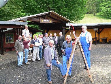Kasseler Sparkasse unterstützt den Ausbau des Honighofs in Wickenrode Helsa. Die Honighof-Anlage oberhalb des Helsaer Ortsteils Wickenrode ist der Treffpunkt für die Bürger und die Vereine von Wickenrode. Die Grill- und Freizeitanlage war in die Jahre gekommen und wurde jetzt mit tatkräftiger Hilfe der Aktiven der Wickenröder Vereinsgemeinschaft renoviert. „Wir hatten das Problem, dass das Dach nicht mehr dicht war und wir somit den Honighof nur noch eingeschränkt nutzen konnten“, berichtet Gitta Brede als Koordinatorin der Wickenröder Vereine und Verbände. Fünf Wochen habe die Vereinsgemeinschaft bereits an der Renovierung gearbeitet und für die Abschlussarbeiten sei nochmals eine Woche zu veranschlagen. „Unser Dank geht an diejenigen, die sich hier ehrenamtlich engagiert haben und an die Kasseler Sparkasse, die mit ihrer Spende die Sanierung erst ermöglich hat“, betonen der Helsaer Bürgermeister Thilo Küthe und Landrat Uwe Schmidt. Schmidt hatte bei der Kasseler Sparkasse „die Türen geöffnet“, so der Landrat. „Wir unterstützen eine solche Initiative immer gern, da durch das aktive Mitwirken der Vereinsgemeinschaft deutlich wird, dass alle hinter der Maßnahme stehen“, erläutert Dr. Ralf Beinhauer vom Vorstand der Kasseler Sparkasse. Damit sei die Nachhaltigkeit der Förderung „auf jeden Fall gegeben“. Dr. Beinhauer, der zum ersten Mal am Honighof war, zeigte sich von der Anlage und der umgebenden Landschaft „begeistert“. Die Kasseler Sparkasse unterstützt die Renovierungsarbeiten mit 5.000 Euro. Trotz der umfangreichen Eigenleistung kostet die gesamte Sanierung des Honighofs rund 11.000 Euro. „Wir haben beim Dorffest im letzten Jahr gesammelt und sind auch sonst von Spenden und Sponsoren aus Wickenrode und Helsa unterstützt worden“, informiert Gitta Brede. Da der Sommer bisher noch auf sich warten lasse, werden die Sanierungsarbeiten für die „hoffentlich vielen Grillabende 2012“ noch rechtzeitig fertig. Pressekontakt: Pressestelle LANDKREIS KASSEL, Harald Kühlborn Zu dieser Meldung können wir Ihnen folgendes Medium anbieten: Honighof 002 Auf dem Foto sieht man die Aktiven der Wickenröder Vereinsgemeinschaft sowie Bürgermeister Thilo Küthe, Landrat Uwe Schmidt und Dr. Ralf Beinhauer im Hintergrund vor der sanierten Anlage im Regentest.