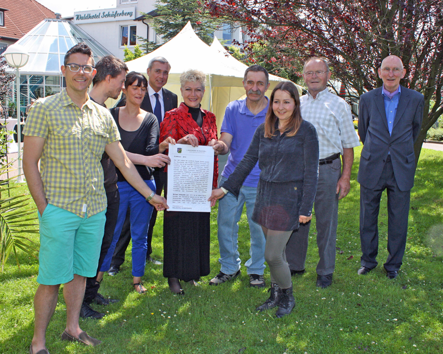 Hintergrund: Seit 1997 initiiert der Landkreis Kassel, jeweils parallel zur Documenta, das Projekt EUARCA (EUropean ARt CAmps). Ziel ist der kulturelle Austausch zwischen dem Landkreis Kassel und den europäischen Partnerregionen. In diesem Jahr wurden Künstlerinnen und Künstler aus Italien, Frankreich, Österreich und USA nach Espenau, Hofgeismar, Immenhausen und Vellmar eingeladen. Pressekontakt: Pressestelle LANDKREIS KASSEL, Harald Kühlborn Zu dieser Meldung können wir Ihnen folgendes Medium anbieten: Euarca1 Auf dem Foto sieht man von links nach rechts Michael Velliquette, Sébastien Rémy, Camille Roux, Dr. Ralf Beinhauer (Kasseler Sparkasse), Susy Casillas, Kassian Erhart, Chiara Lecca, Karl Markl (Schmied aus Espenau) und Helmut Wenzel vom Waldhotel Schäferberg.
