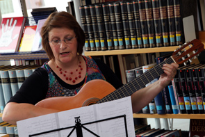 Wer in den Song reinhören möchte, findet ihn in den Bibliotheksregalen auf einer CD-Sammlung mit Arbeiterliedern, ebenfalls gespendet vom Förderverein. Dieser hat sich nicht lumpen lassen und den Medienbestand erst kürzlich kräftig aufgestockt. „Da wir ordentlich Geld zusammenbekommen haben, konnten wir wieder viele Wünsche des Teams um Cornelia Berg erfüllen“, erklärt Ruth Heine, Vorsitzende des Fördervereins der Stadtbibliothek.