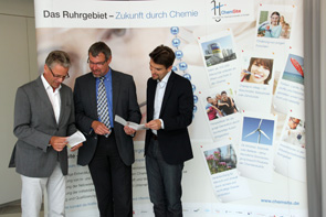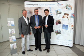 Wie verbessert Chemie die Lebensqualität Hertener Bürger? Diese Frage beantwortet eine neue Wanderausstellung im Glashaus-Foyer. Unter dem Titel „Das Ruhrgebiet – Zukunft durch Chemie“ eröffnete Bürgermeister Dr. Uli Paetzel gemeinsam mit Dr. Jörg Marth, Leiter der ChemSite-Initiative, und Peter Brautmeier, städtischer Fachbereichsleiter für Wirtschaft und Arbeit, den Chemie-Informationsstand.