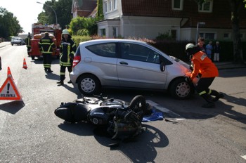 Gegen 16.20 Uhr waren auf der Alleestraße auf der Kreuzung an der Westgaster Mühle ein Pkw sowie ein Motorrad zusammengestoßen. Der Motorradfahrer wurde hierbei verletzt und musste vom Rettungsdienst ins Krankenhaus gebracht werden. Die Fahrerin des Kleinwagens kam mit dem Schrecken davon.