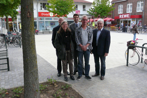 Die Pflasterarbeiten am Einkaufszentrum in Herten-Disteln sind abgeschlossen. Nach zweieinhalb Wochen Arbeit können sich die Distelner nun über einen neugestalteten Platz freuen. Bürgermeister Dr. Uli Paetzel hat sich das Ergebnis gemeinsam mit Mitarbeitern des Zentralen Betriebshofs (ZBH) angeschaut.