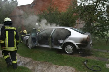 Der Wagenbesitzer bemerkte das Feuer gegen kurz nach 18 Uhr und rief per Notruf die Freiwillige Feuerwehr Norden. Bis zu deren Eintreffen hinderte er die Flammen mit einem Gartenschlauch an der weiteren Ausbreitung.