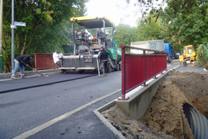 Bereits seit Dienstag sind die Gehwege fertig, Mittwoch und Donnerstag folgten die abschließenden Asphaltarbeiten und die Montage des Brückengeländers.