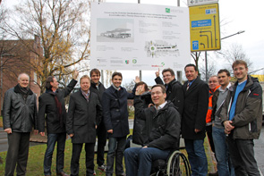 3, 2, 1 – Los! Das Baustellenschild in der Konrad-Adenauer-Straße ist enthüllt. Ab heute gehen in der Kaiser- und der Konrad-Adenauer-Straße die ersten Arbeiten rund um den Neubau des Zentralen Omnibusbahnhofs los. Bürgermeister Dr. Uli Paetzel, Stadtbaurat Volker Lindner, weitere Vertreter der Stadtverwaltung und die beteiligten Unternehmen eröffneten heute offiziell die Baustelle, die für rund 15 Monate in der Innenstadt entstehen wird.