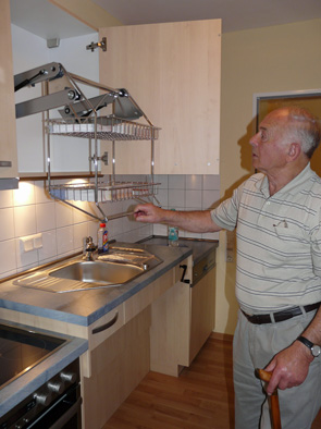 Absenkbare Schränke, eine Klingel mit optischem Signal oder eine ebenerdige Dusche? In der Ausstellung „optimales Wohnen“ in der planraumleben-Modellwohnung (Wilhelmstr. 6, 45699 Herten) können sich Interessierte noch vor der Winterpause Anregungen für die komfortable und barrierearme Gestaltung der eigenen Wohnung holen.