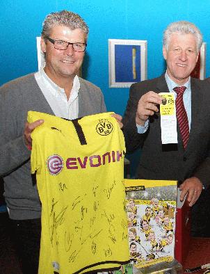 Neben dem Trikot hatte Dickel noch weitere Preise aus dem BVB Fanshop im Gepäck. Diese gehen ebenfalls auf dem Postweg an Sebastian Frank aus Sprockhövel (Mütze), Leonie Stöcker aus Gevelsberg (Mütze), Vanessa Reifenröther aus Schwelm (Sparschwein) und Julian Roß aus Dortmund (Adventskalender).
