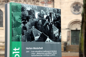 Im Jubiläumsjahr 2011 wurde die erste Stele mit geschichtlichen Informationen in Herten-Mitte aufgestellt, jetzt folgt Westerholt als nächster Stadtteil. Am Marktplatz gegenüber der Kirche weihte Bürgermeister Dr. Uli Paetzel die Stele gemeinsam mit vielen Projektbeteiligten nun ein.
