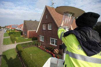 Installation von LED-Straßenbeleuchtungen in der Molenstraße Norddeich