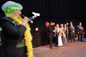 Mit lautem „Helau“ stürmten die Jecken den Konferenzraum „Brücke“ und nahmen hier dem Stadtoberhaupt den goldenen Stadtschlüssel ab. „Heute regieren die Narren unsere Stadt. Und ich bin sicher, dass sie ihre Verantwortung voller Begeisterung wahrnehmen“, sagte Schirmherr Uli Paetzel lachend: „Ich hoffe nur, dass diese feierfreudige Schar einem Handel zustimmt und mich gegen ein Fässchen Bier frei lässt.“ In den letzten Jahren wurde er dank dieses Tauschgeschäfts immer von seinen Fesseln befreit. Nicht ganz uneigennützig von den Damen im Glashaus, denn Uli Paetzel spendiert nicht nur ein Fass Bier, sondern führt auch gerne die große Polonaise an.