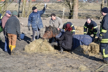 Die Einsatzkräfte zogen Schwerlastbänder unter dem Pferd durch, wodurch ein angeforderter Trecker es behutsam aus dem Schlick ziehen konnte. Das völlig entkräftete Tier wurde durch einen anwesenden Tierarzt medizinisch versorgt und bekam erst mal eine große Portion Heu zu fressen. Einige Zeit später rappelte sich das Pferd wieder auf und konnte in den Stall geführt werden.