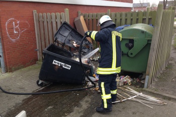 Auf einem Müllsammelplatz neben einem Wohnblock brannte dort ein Restmüllcontainer. Hausbewohner hatten gemeinsam mit einem vorbeikommenden Feuerwehrmann das Feuer mit Wasser aus Eimern unter Kontrolle gebracht.