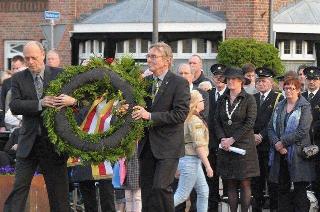 Besuch in Almelo Der 4. Mai ist bei den niederländischen Nachbarn der Tag des “Dodenherdenking“, ähnlich dem Volkstrauertag ein Tag der Erinnerung an die Toten von Krieg und Gewalt. Als Zeichen der Freundschaft und Ausdruck besonderer Wertschätzung waren auch in diesem Jahr Bürgermeister Dr. Peter Paul Ahrens und sein Referatsleiter Karl Fels in Iserlohns niederländische Partnerstadt Almelo eingeladen, um an einer Feierstunde teilzunehmen und im Rahmen einer eindrucksvollen Zeremonie am innerstädtischen Ehrenmal einen Kranz niederzulegen.