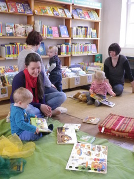Mütter mit ihren Kindern beim Bücher-Baby-Treff