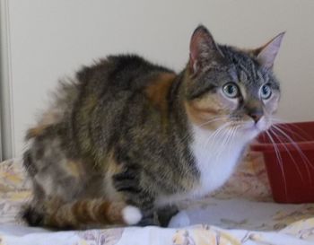 Casy sollte als Einzelkatze gehalten werden, da sie keine anderen Katzen mag. Leider hat diese Katze ein Manko: Sie zupft sich am unteren Rücken ihr Fell aus. Wir vermuten, dass sich diese Macke legt, wenn sie in ein ruhiges Zuhause umgezogen ist.