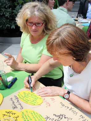 Nachdem in einer dritten Runde konkrete Vorschläge für die Gestaltung der Stadt gesammelt wurden, präsentierten die Bürger ihre Ergebnisse. Fazit: Sie wünschen sich vor allem ein Gesamtkonzept und eine Kommunikation auf Augenhöhe mit den städtischen Vertretern. Oft genannt wurde auch der Wunsch, eine bürgerliche Steuerungsgruppe einzurichten. Viele sprachen sich für „mehr Toleranz für Unkraut“ aus. So sollen Brachflächen öffentlich nutzbar gemacht werden.