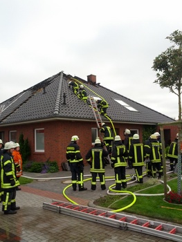 Am Samstagnachmittag wurde die gesamte Norder Wehr zu einem Dachstuhlbrand in der Lisztstraße alarmiert. An einem Wohngebäude war im Dachbereich aus bislang noch ungeklärter Ursache ein Feuer ausgebrochen. Die Rauchsäule war schon von Weitem sichtbar und lockte zahlreiche Schaulustige an. Erschwerend kam noch hinzu, dass das Objekt in einer Sackgasse mit enger Straßenführung lag, was ein Rangieren der Einsatzfahrzeuge erschwerte.