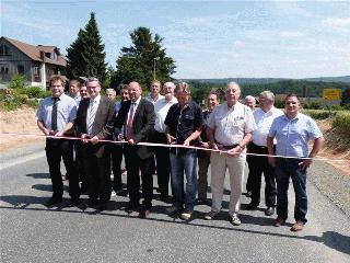 Kreisstraße 17 zwischen Baunatal, Ortsteil Guntershausen und der Kreisgrenze zum Schwalm-Eder-Kreis wird für den Verkehr freigegeben Baunatal. Nach nur 2 Monaten sind die Bauarbeiten an der Kreisstraße 17 zwischen Baunatal, Ortsteil Guntershausen und der Kreisgrenze Schwalm-Eder-Kreis weitestgehend abgeschlossen. „Wir sind sehr froh, dass diese umfangreiche Straßenumbaumaßnahme im Altkreis Kassel sogar noch vor dem geplanten Termin abgeschlossen und der Abschnitt wieder für den Straßenverkehr freigegeben werden kann“, freut sich Landrat Uwe Schmidt bei der offiziellen Verkehrsfreigabe. Angepeilt war ursprünglich ein Termin Ende August. Die K17 gehörte zu den stark in Mitleidenschaft gezogenen Straßen im Kreisgebiet. Bereits 2003 hatte der Kreisausschuss daher den Planungsauftrag für den Straßenbau gegeben. Nachdem alle notwendigen Abstimmungen mit den Fachbehörden und der Stadt Baunatal abgeschlossen waren, gab das Land Hessen Ende letzten Jahres auch finanziell grünes Licht für die Umbauarbeiten. „Insgesamt wurden rund 782.000 Euro investiert - rund 470.000 Euro kommen als Zuschuss vom Land, 204.000 Euro übernimmt der Kreis und 100.000 Euro entfallen auf die Stadt Baunatal, die gleichzeitig mit unseren Arbeiten einen Gehweg vom Ortsausgang Guntershausen bis zum Hof Eisenach angelegt hat“, erläutert Landrat Schmidt weiter. Die Um- und Ausbauarbeiten an der K 17 waren erheblich. Die bisher nur fünf Meter breite Fahrbahn wurde auf 5,5 Meter verbreitert. Die Straße erhielt einen frostsicheren Aufbau und die Entwässerung wurde grundsätzlich neu gestaltet. Die Wirtschaftswege, die in die Straße münden, sind nun besser angebunden, die Grundstückszufahrten wieder angeschlossen. Die vorher kaum als solche erkennbaren Banketten sind jetzt auf jeder Straßenseite einen Meter breit. Die Linienführung der Straße ist weitestgehend erhalten geblieben. Auf der Höhe des Hofes Eisenach wurde ein Fahrbahnteiler zur Verkehrsberuhigung eingebaut - hier beginnt auch der von der Stadt geplante Gehweg.